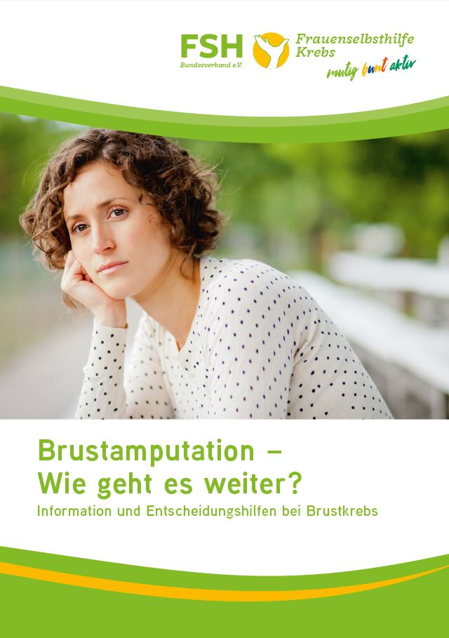 April 2021 - Lange war sie vergriffen. Nun gibt es sie wieder: die Broschüre "Brustamputation - Wie geht es weiter". Wir haben die Informationen komplett überarbeitet und mithilfe von Experten auf den neuesten Stand gebracht. Die Broschüre soll dazu beitragen, betroffenen Frauen in einer schwierigen Entscheidungssituation zu unterstützen.