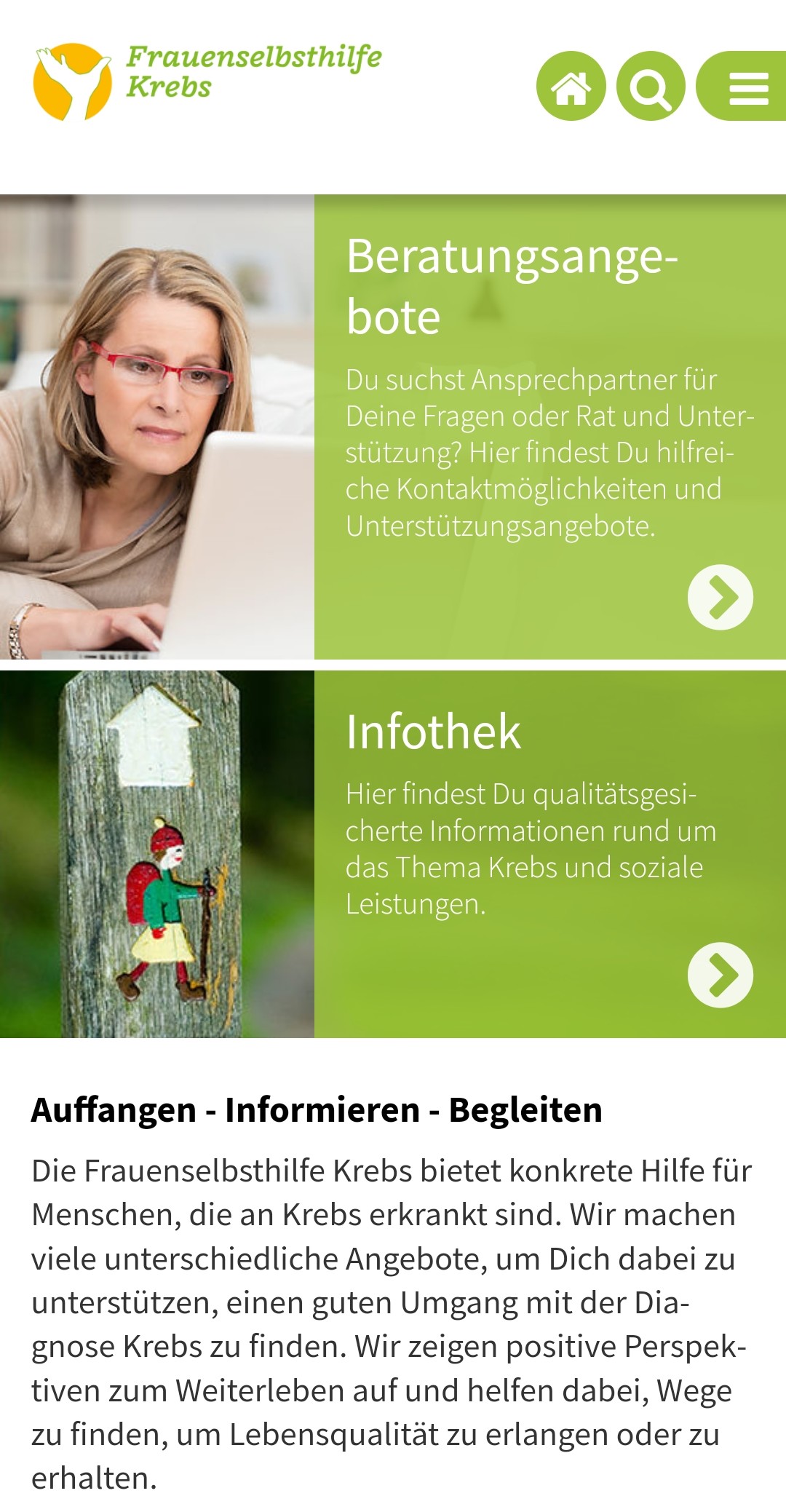 Die von der Frauenselbsthilfe entwickelte App hilft dabei, sich im Dschungel der Angebote zu orientieren. Sie bietet die Möglichkeit, auch unterwegs schnellen Zugriff auf qualitätsgesicherte Informationen und relevante Ansprechpartner zu haben. Mit einem Touch auf den Screen des Smartphones können direkt telefonische Kontakte hergestellt werden. Verlinkungen führen direkt zu Antragsformularen oder zu Tabellen mit den aktuell gültigen Leistungen.